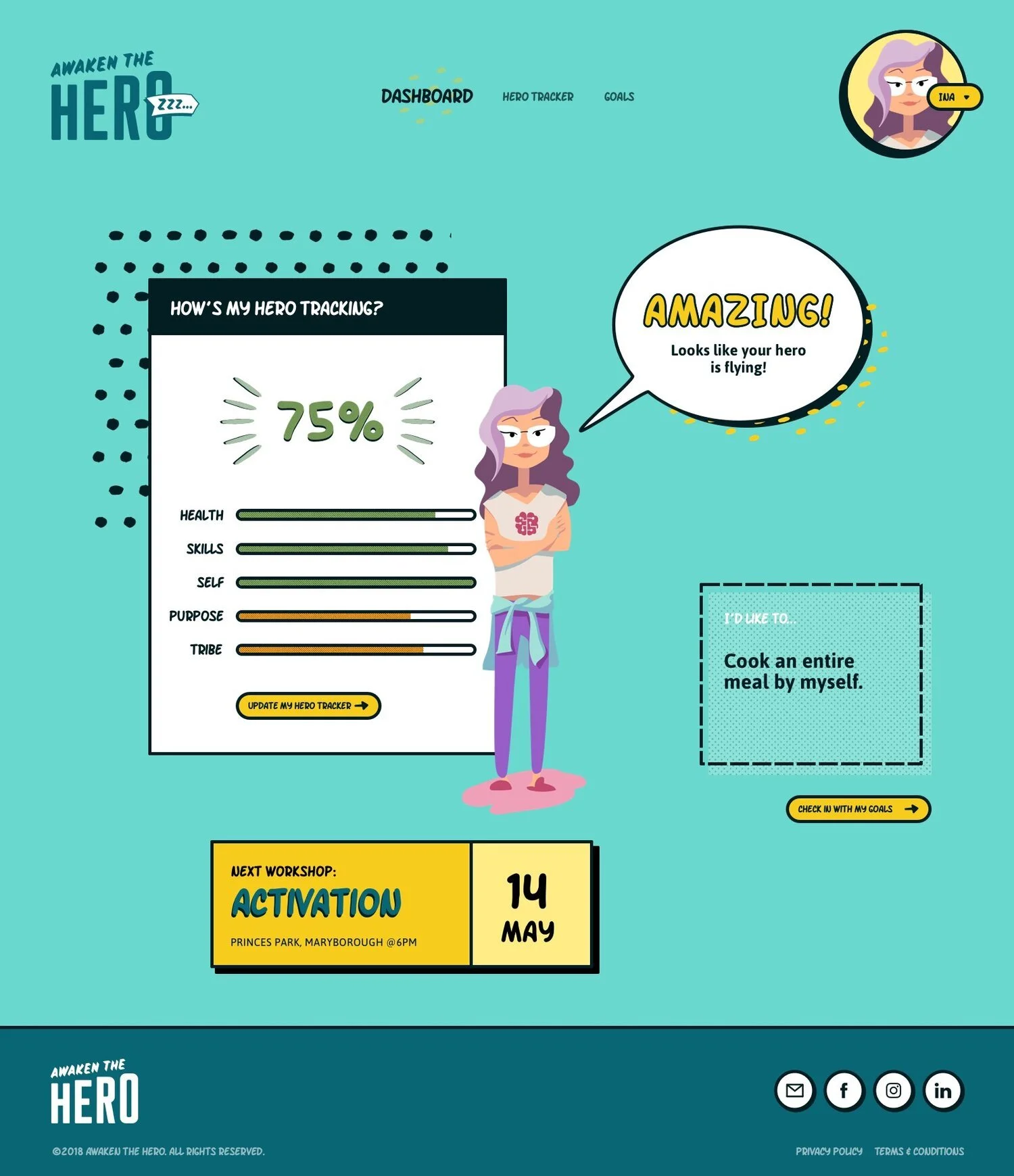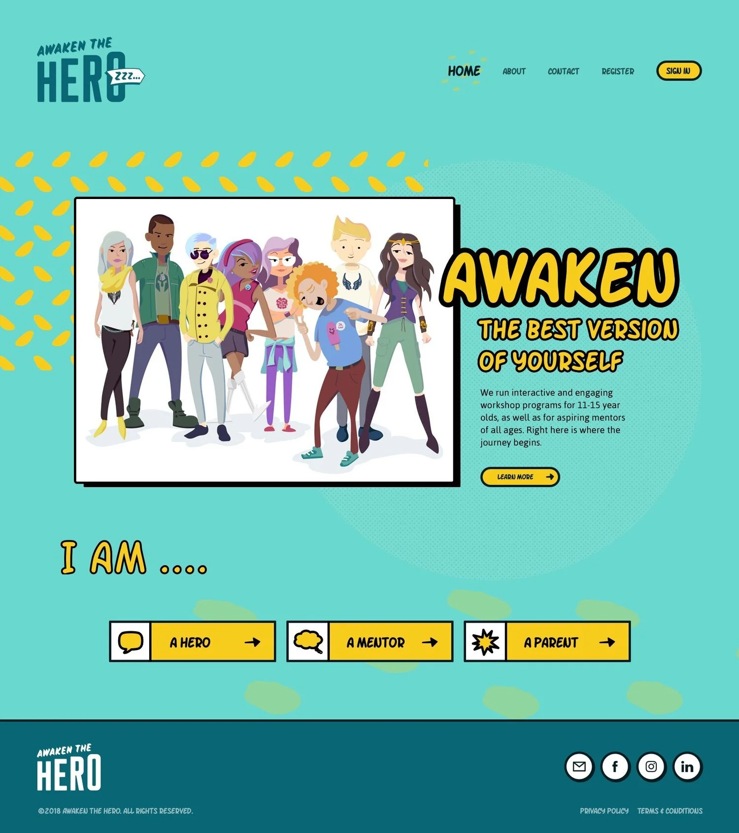 For ages 11 to 15, it offers in-person workshops, mentoring, and an interactive online platform. Phase one includes the homepage, signup, onboarding, profile creation, and a user-friendly hero tracker.